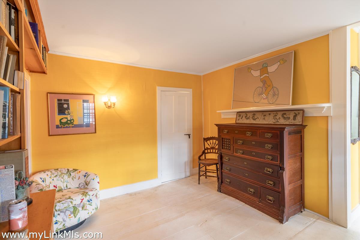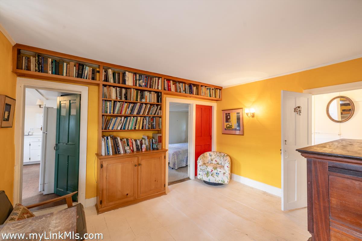 Enter side door from Cottage Court into a glass enclosed side porch with doors leading into the front living room and kitchen. The front living room, with an original wood burning fireplace overlooks, an enclosed front yard. The second, more central living room leads to the eat-in kitchen, first floor bedroom, and full bath. The kitchen leads back to a rear mudroom entrance with washer and dryer.